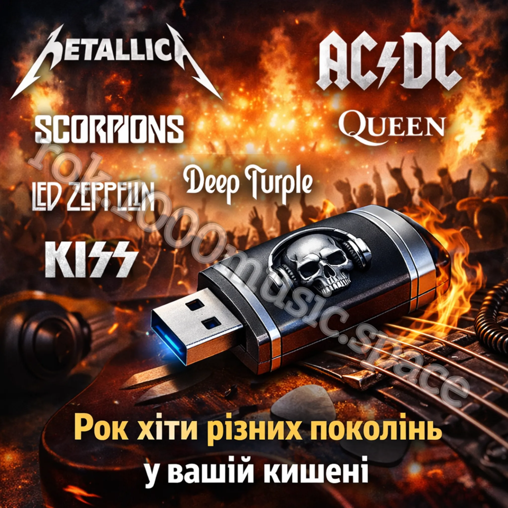 3 Doors Down, AC/DC, Accept, Aerosmith, Alice in Chains, Billy Idol, Black Sabbath, Bob Dylan, Bon Jovi, LINKIN PARK, METALLICA, Papa Roach, Pearl Jam, Pink Floyd, Queen, Rage Against, Rainbow, Red Hot Chili Peppers, Scorpions та інші.
